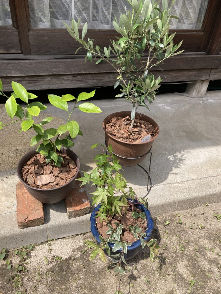 オリーブは高さ1メートルくらいに。レモンも新しく伸びた枝が増えて2倍くらいの大きさに。紅葉も地味に成長して枝も増えています。シクラメンは球根だけになりました。オリーブは今の鉢がもうきつそうな感じなのでもう少し深い鉢にもう一度植え替えしてもいいかも。