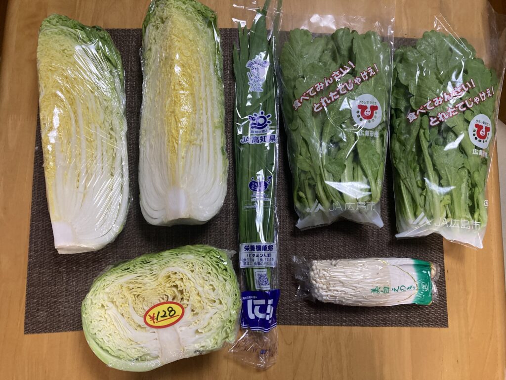 鴨鍋用に白菜と春菊。年末に備えて野菜を多めに買ってみた