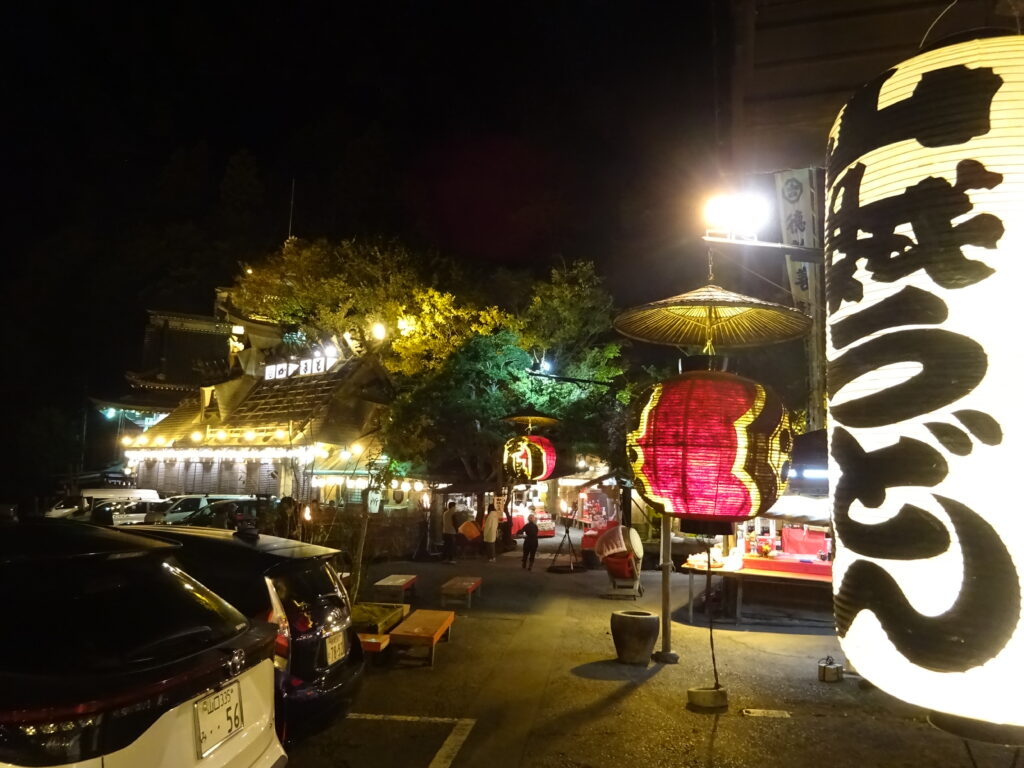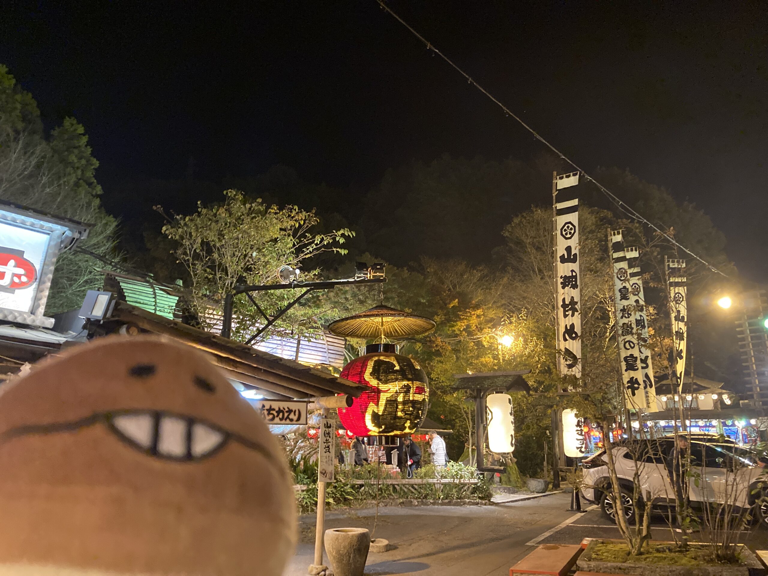 徳山から岩国方面の国道2号線は山ルートで夜は真っ暗、若干不安に思いつつ山賊の案内看板に従って進んでいくと突然開けた場所に煌々と灯りをたたえる山賊が出現!想像していたお店の規模感を遥かに超え、あたり一面、屋敷や城みたいなのが出現してまるで小さな村のよう。雰囲気で言うと台湾の九份のような「千と千尋の神隠し」的な不夜城感です。