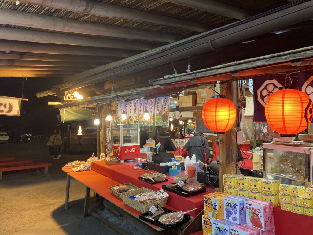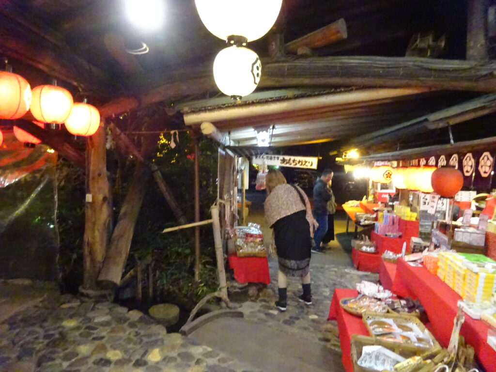 混んでいたので空席待ちしている間に「山賊村」を散策してみることに。おみやけ屋さんの路地もいい感じ。たくさんぶら下がっている提灯がお祭り感を高めます。